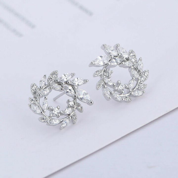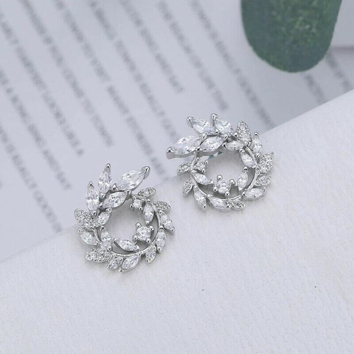 Rund Blatt Ohrstecker Sterling Silber 925 Damen Ohrringe14mm
