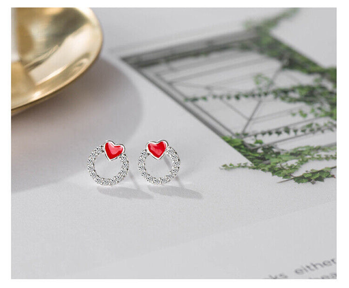 Rund Herz 8mm Ohrstecker Sterling Silber 925 Damen Ohrringe