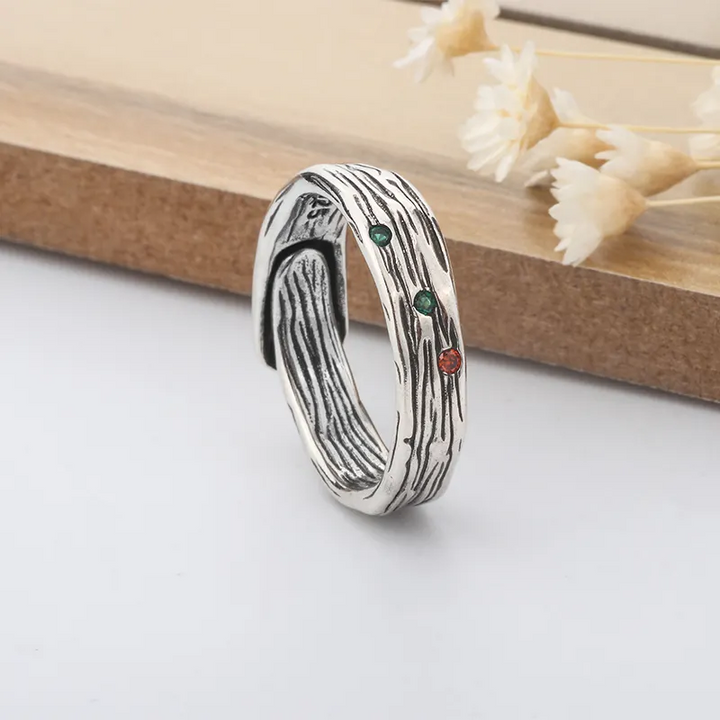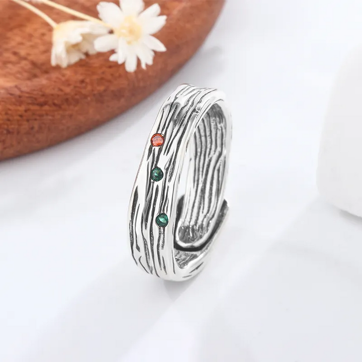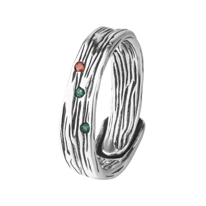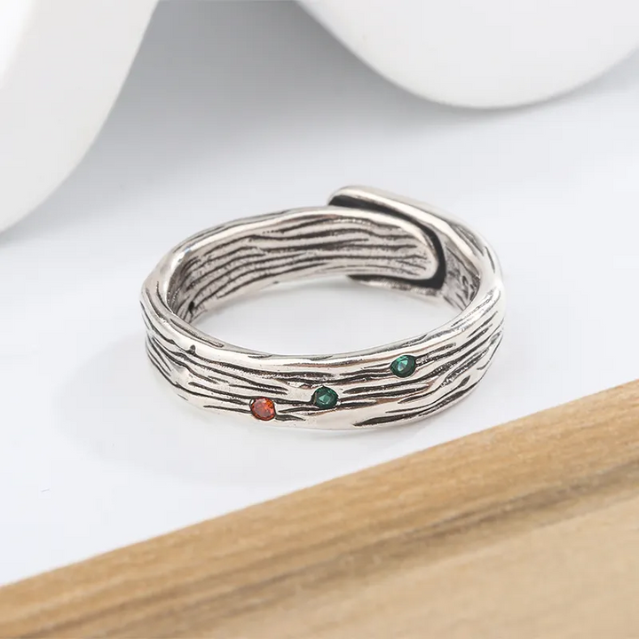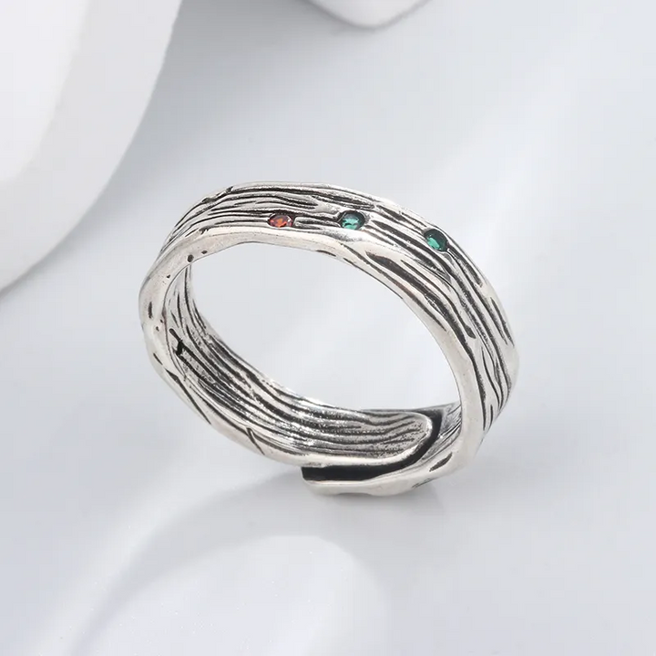 Rustikaler Silberring mit farbenfrohen Steinen – Einzigartiges Design