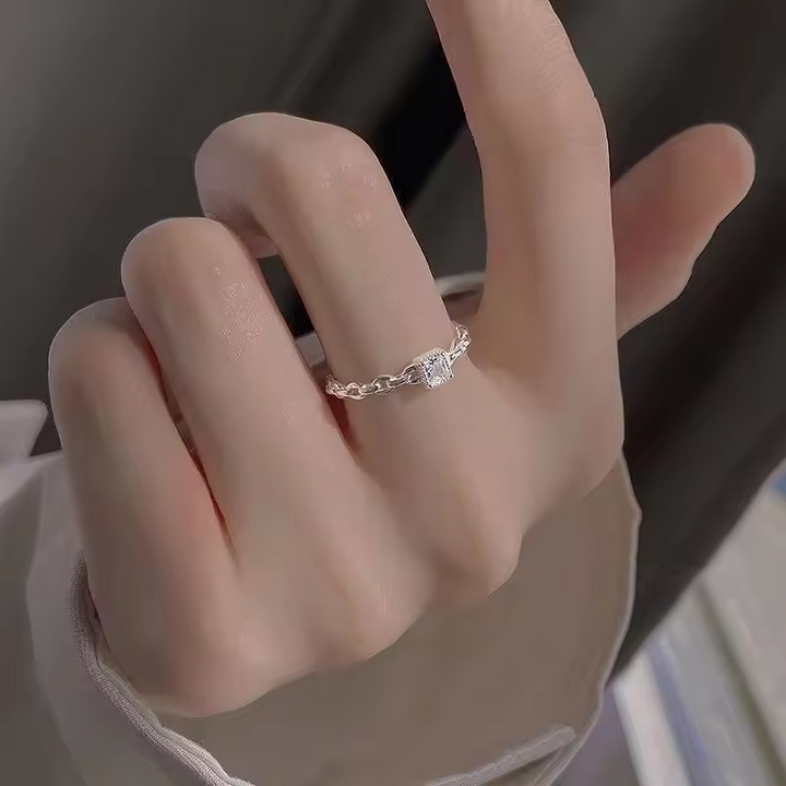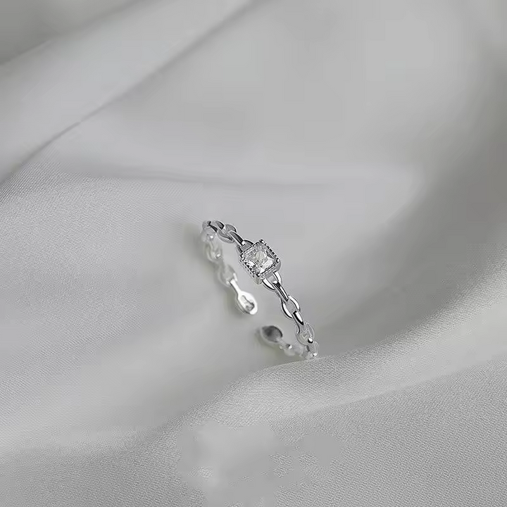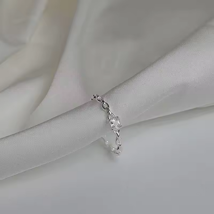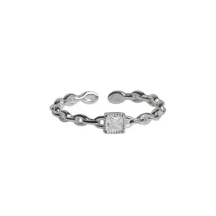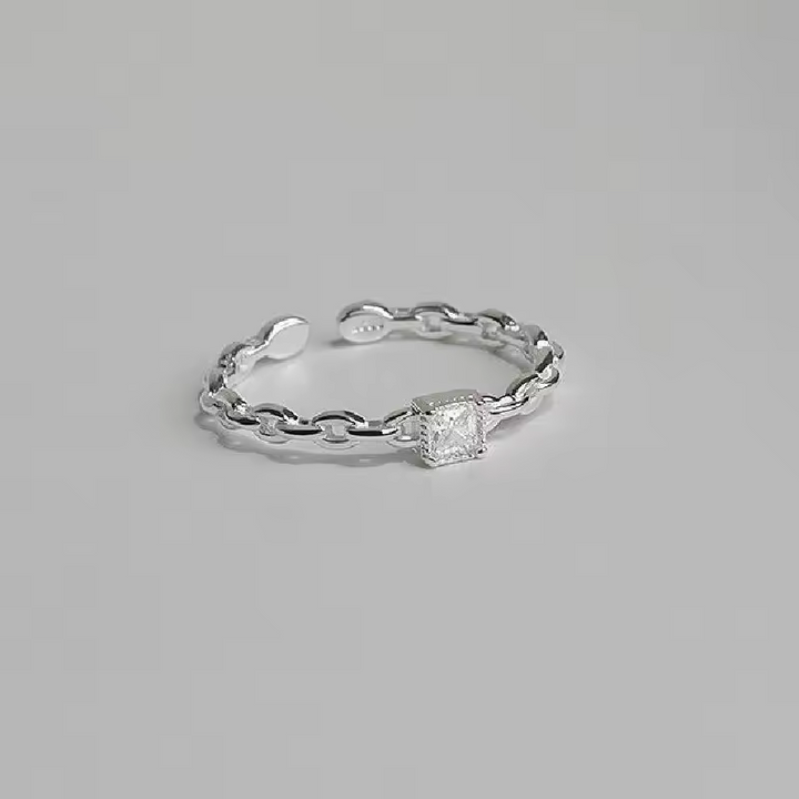 Schlanker Damenring Kette-Look Quadrat Zirkonia, Silber 925, Größe wählbar