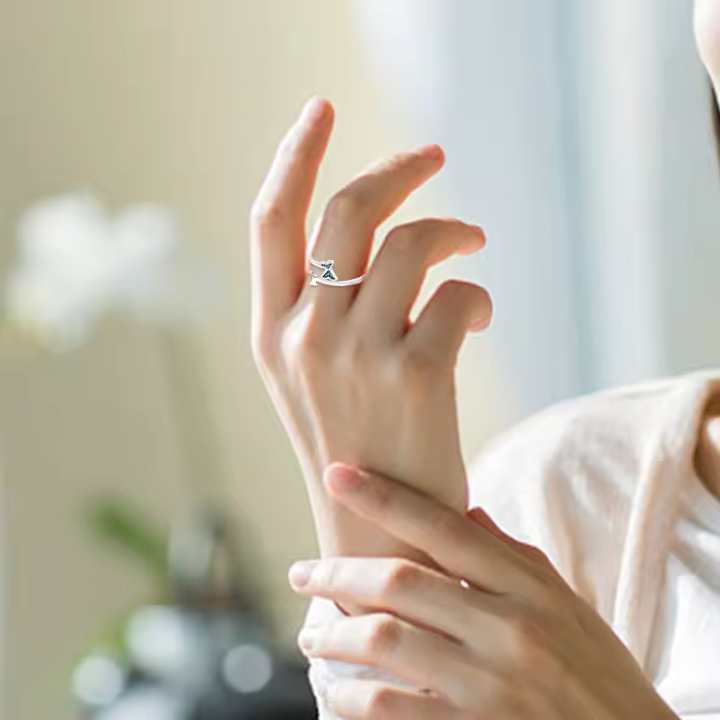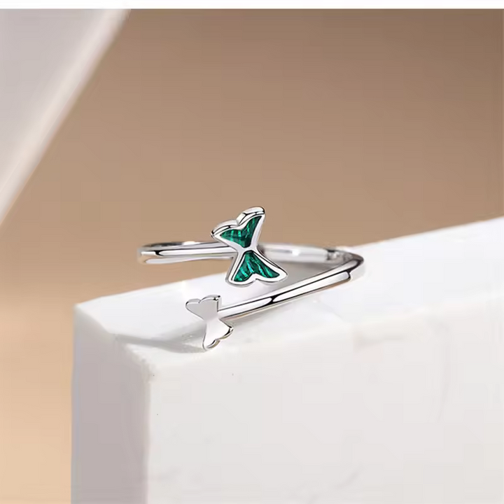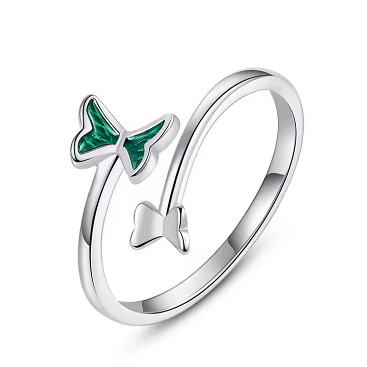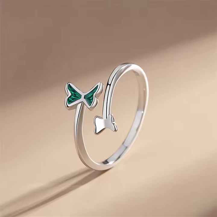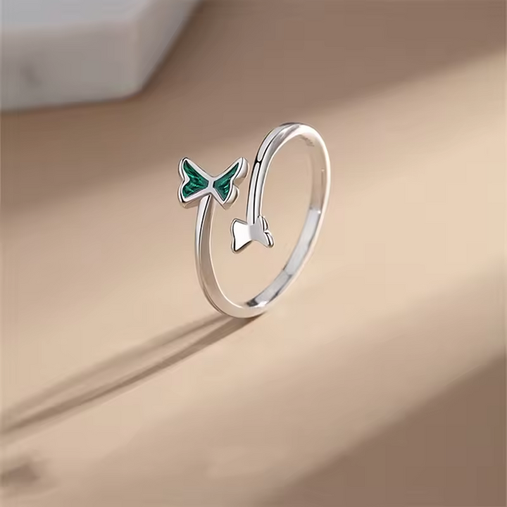 Schlanker Damenring mit kleinem grünem Schmetterlingsmotiv, Sterling-Silber 925