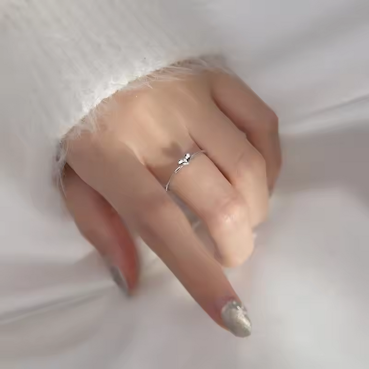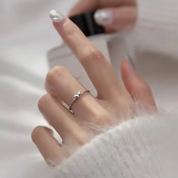 Schlanker Damenring mit Mini-Herz-Motiv, Sterling Silber 925, größenverstellbar.