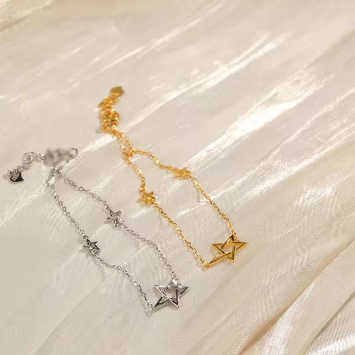 Schlankes Armband mit Ste rnen, 925 Sterling Silber für Damen und Mädchen 19 cm