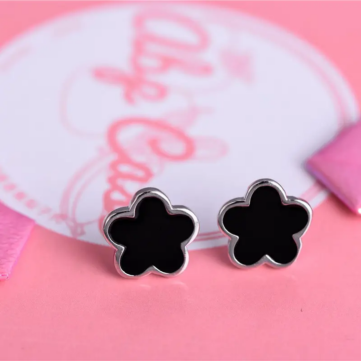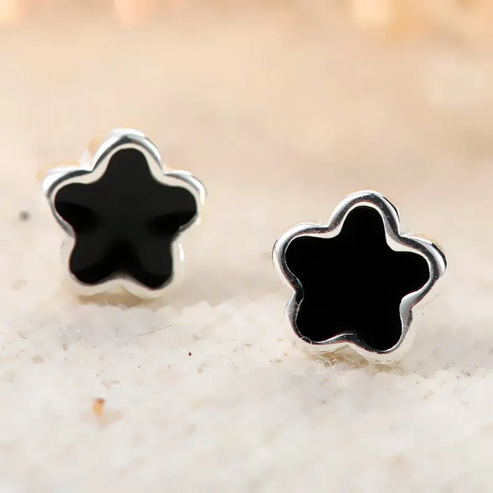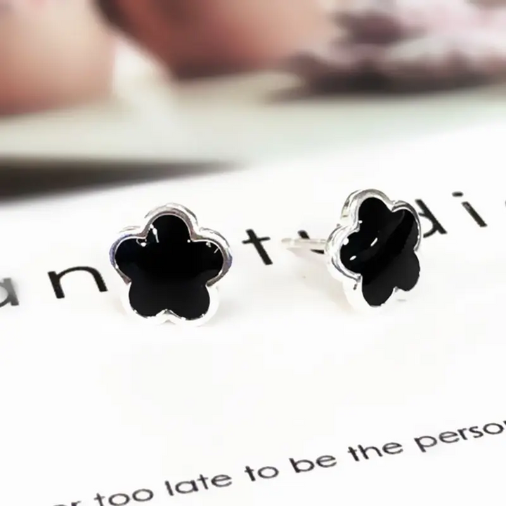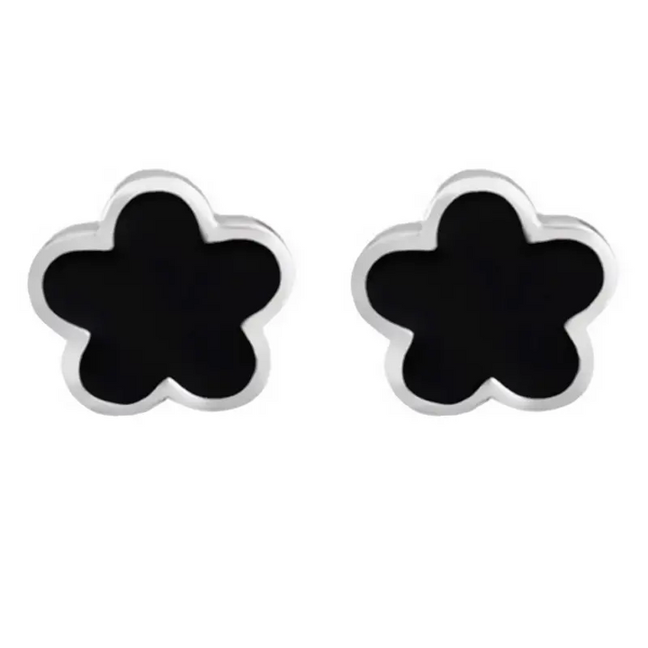 Schlichte Blumen-Ohrstecker – Stilvolles Design in Schwarz und Silber 925