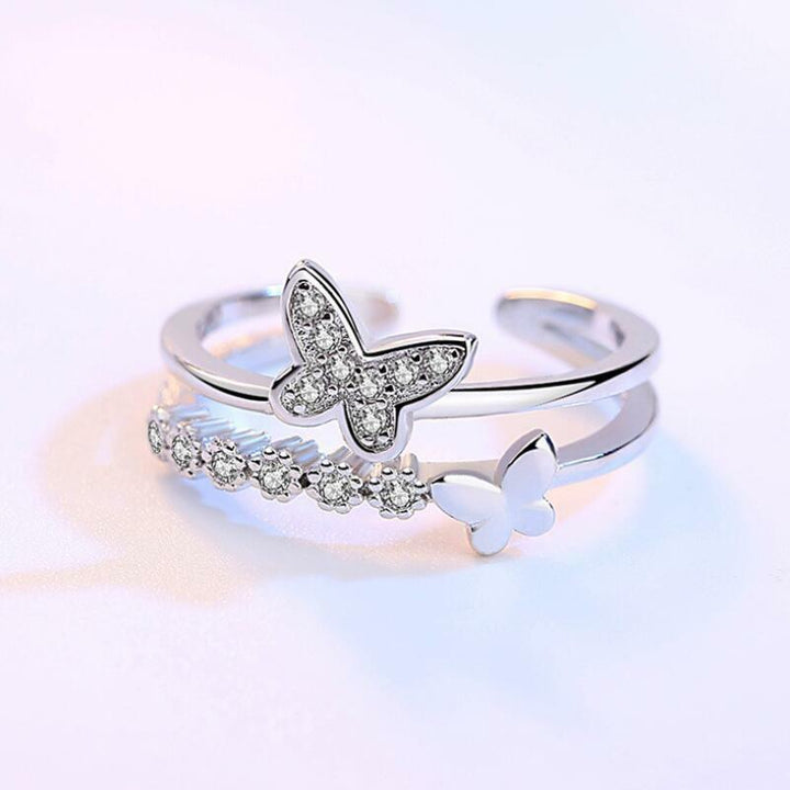 Schmetterling Damen Ring Silber 925er Zirkonia größenverstellbar 48-54
