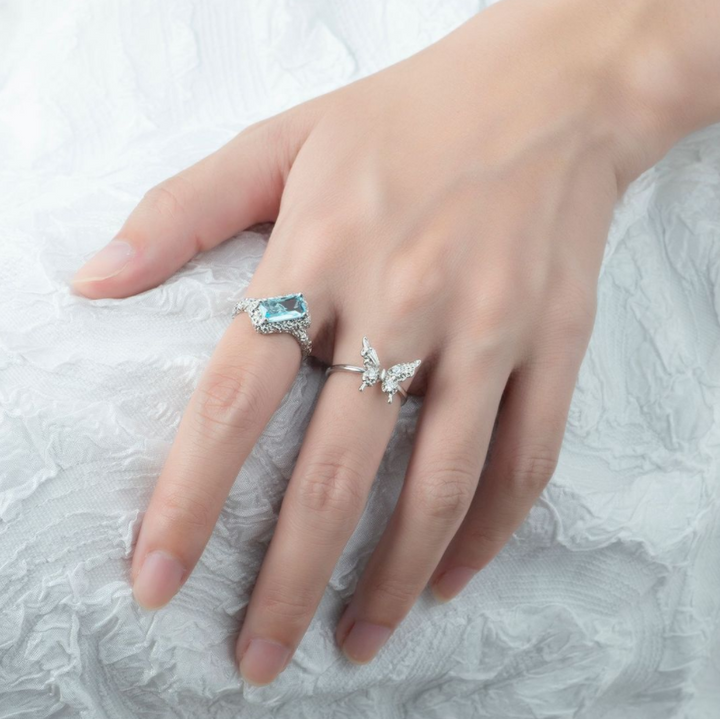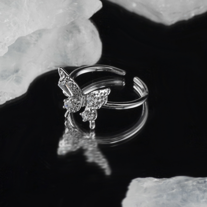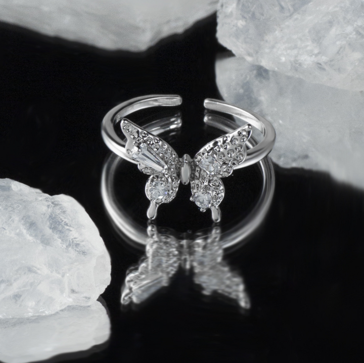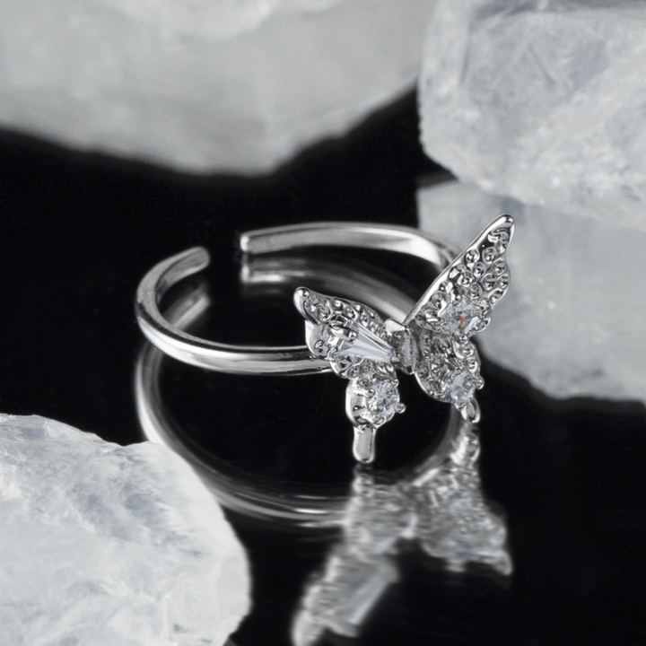 Schmetterling Ring Platiniert mit Zirkonia Anpassbar für alle Größen