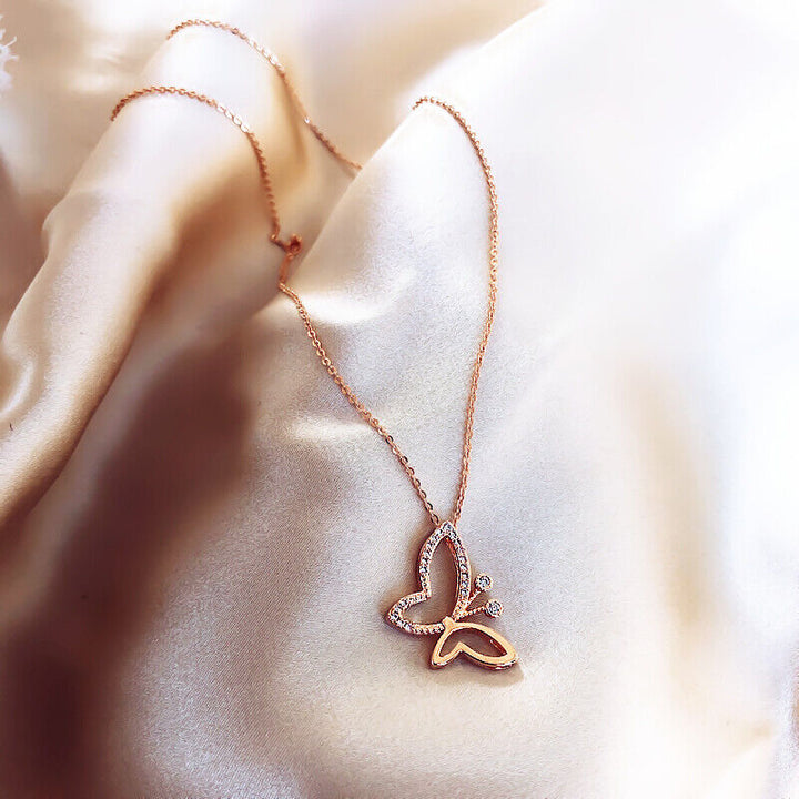 Schmetterlinge Halskette 925 Sterling Silber Kette Roségold Damenkette