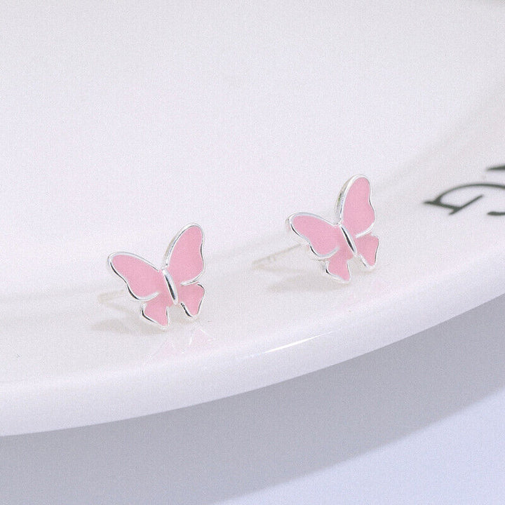 Schmetterlinge Pink Ohrstecker echt Sterling Silber 925 Damen Ohrringe