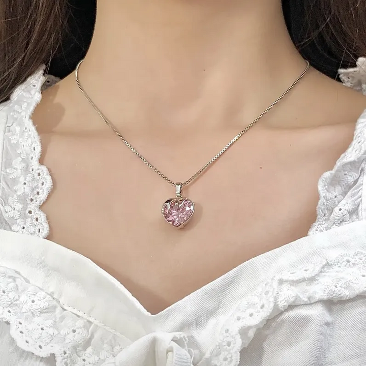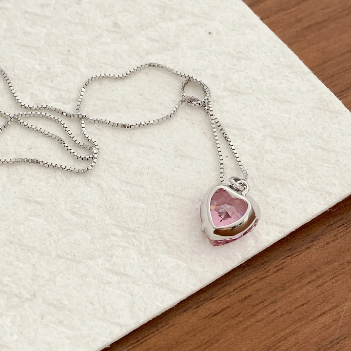 Schmucker Herzanhänger mit rosa Kristall und Silber 925 Detail