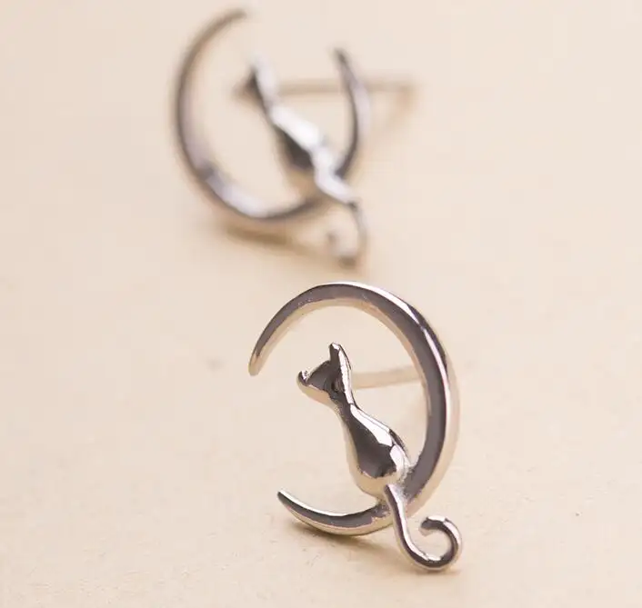 Schmuckset „Katze & Mond“ Sterling Silber 925 – Kette & Ohrringe
