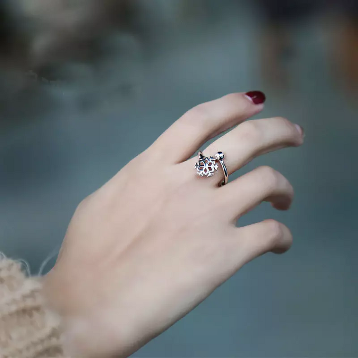 Schneeflocken Ring Sterlingsilber 925 Weihnachten ring Verstellbar 44-48