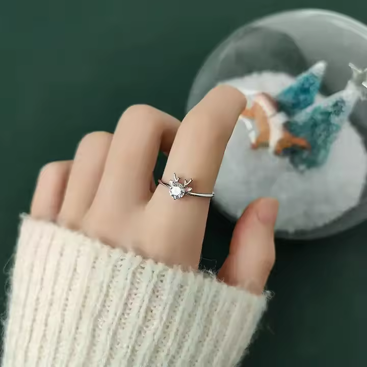 Schneeflocken Ring Sterlingsilber 925 Weihnachten ring Verstellbar 44-48