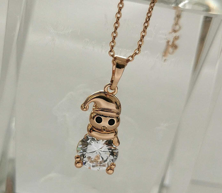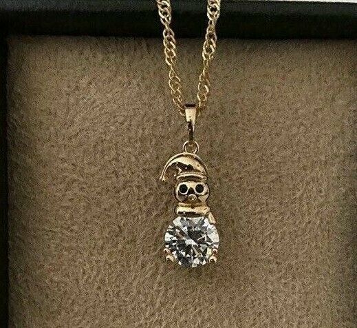 Schneemann Anhänger 18k mit Halskette Mit Swarovski Kristall vergoldet.