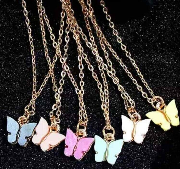 Schöne Halskette goldfarben mit buntem Schmetterlingsanhänger