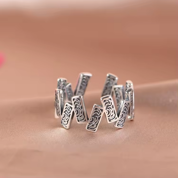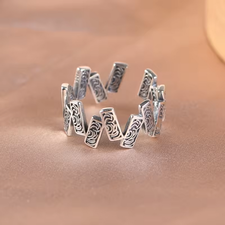 Schöner Ring mit Zickzack-Muster aus 925er Silber, geschwärzt-größenverstellbar