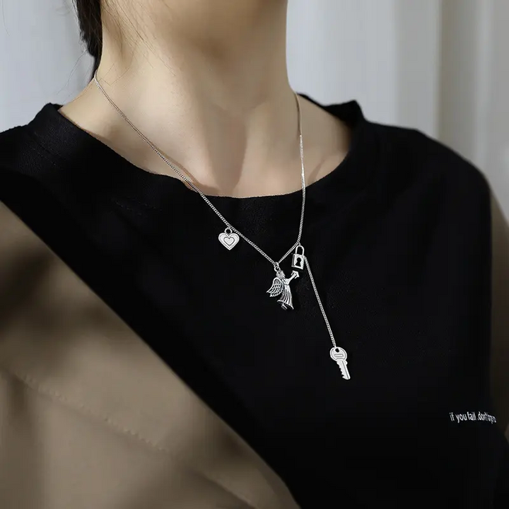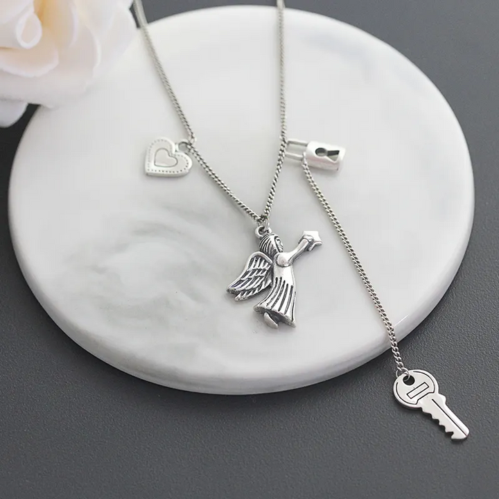 Schutzengel-Kette – Engel mit Stern + Liebessymbole
