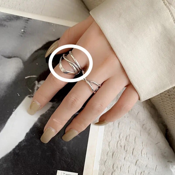 Silber 925 ring für Damen – Geschwärzt Verstellbarer 1 Ring , verdreht em Design