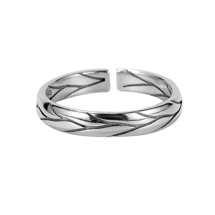 Silberring 925er mit Eingraviertem Blattmuster –Blatt Offenes Design