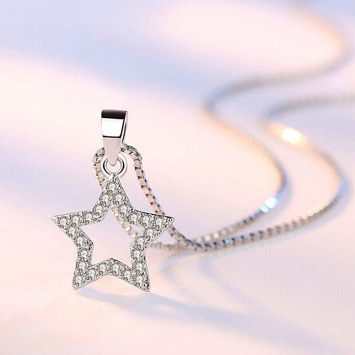 Silberschmuck Kette S925 Halskette mit Anhänger Herz Stern Rund