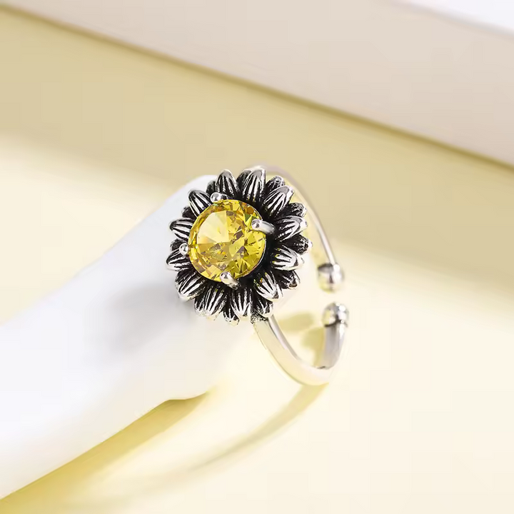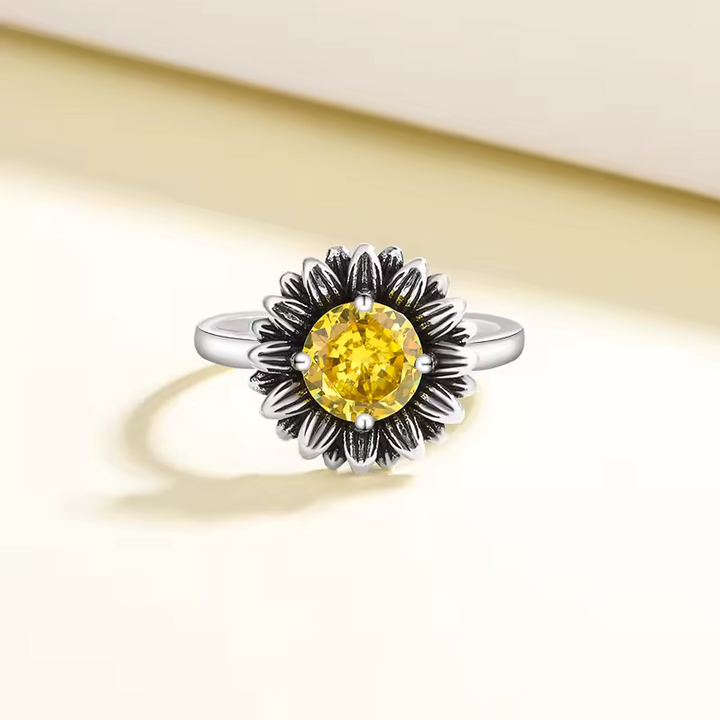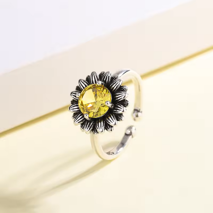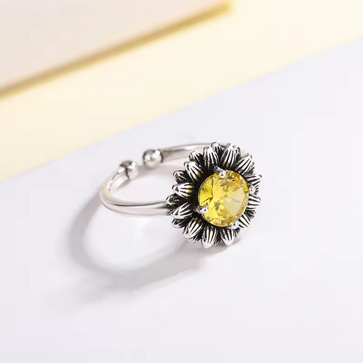 Sonnenblumenring – 925 Sterling Silber, mit Gelben Zirkonia, Größe wählbar