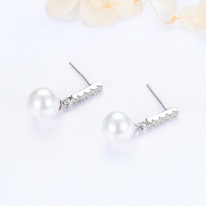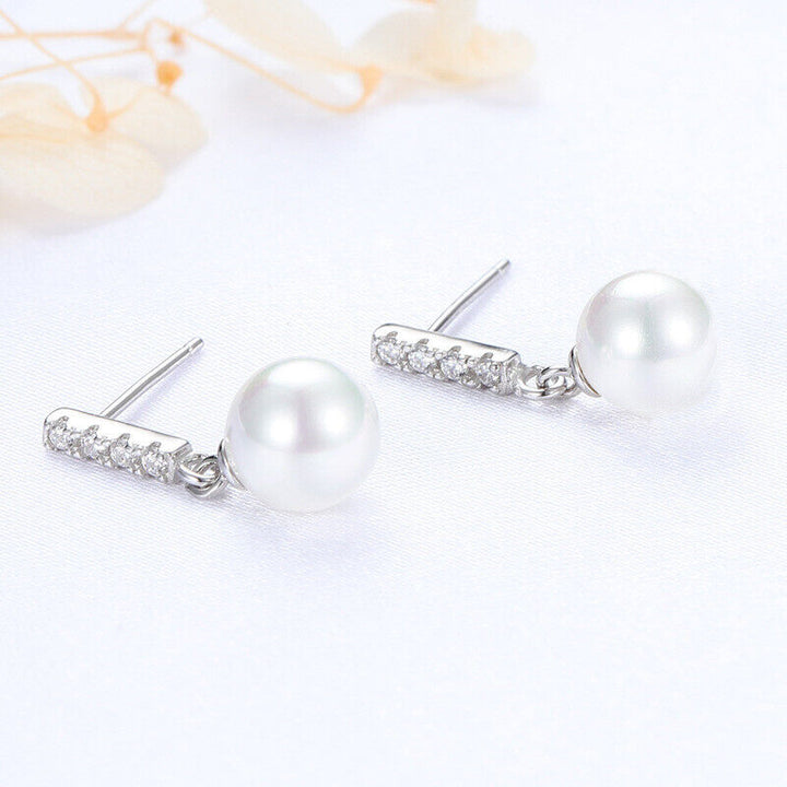 Stäbchen Perlen Zirkonia Sterling Silber 925 Damen Mädchen Ohrringe