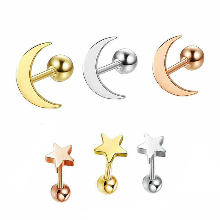Stern-Mond Ohrstecker Ohrring Paar Gesundheitsstecker 316LSchraubverschluss