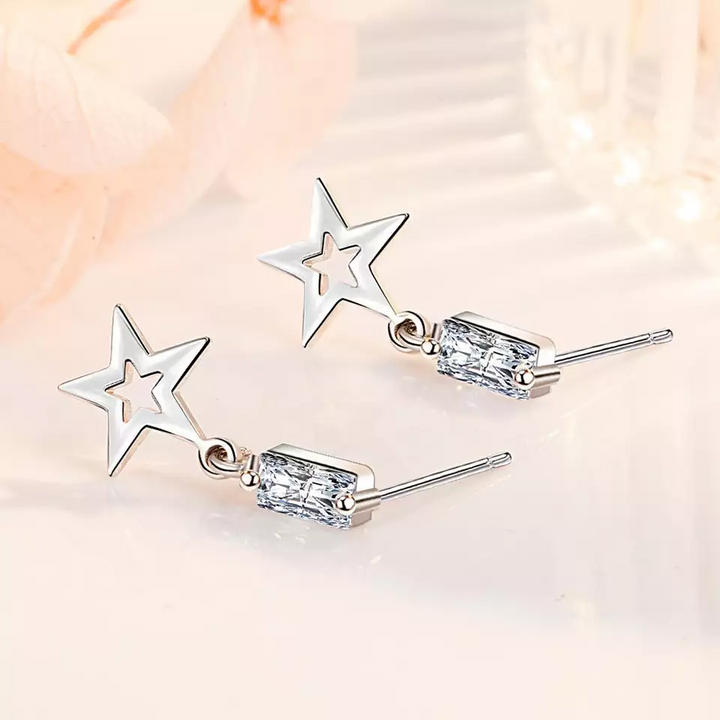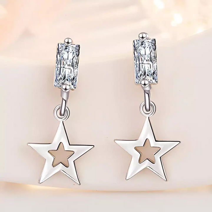Stern, Ohrstecker, Sterlingsilber 925, Zirkonia, Damen Ohrringe Ohrhänger