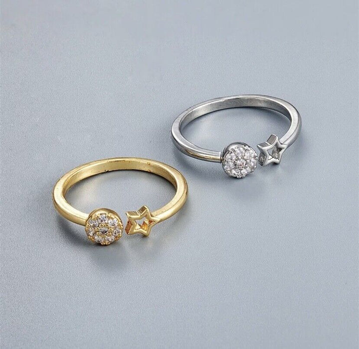 Stern Ring mit Zirkonia Sterlingsilber Größe veränderbar