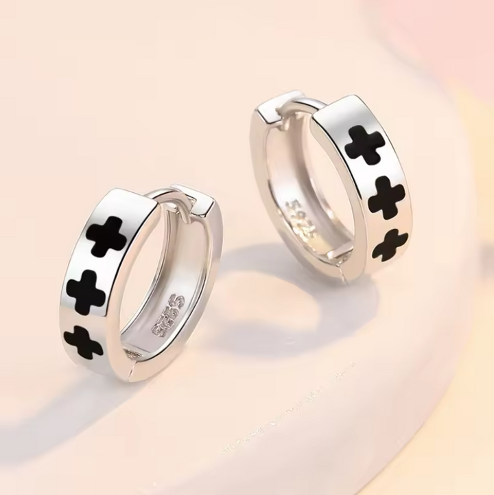 Stylische 925 Sterling Silber Creolen mit schwarzem Kreuz-Design