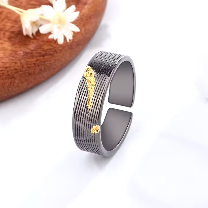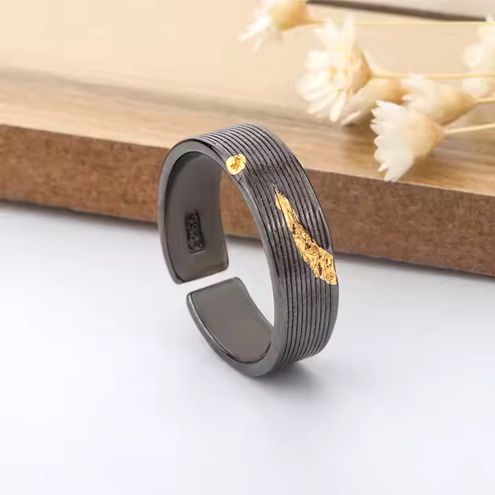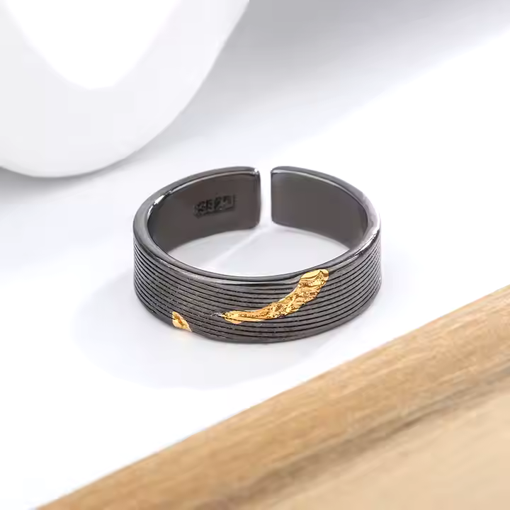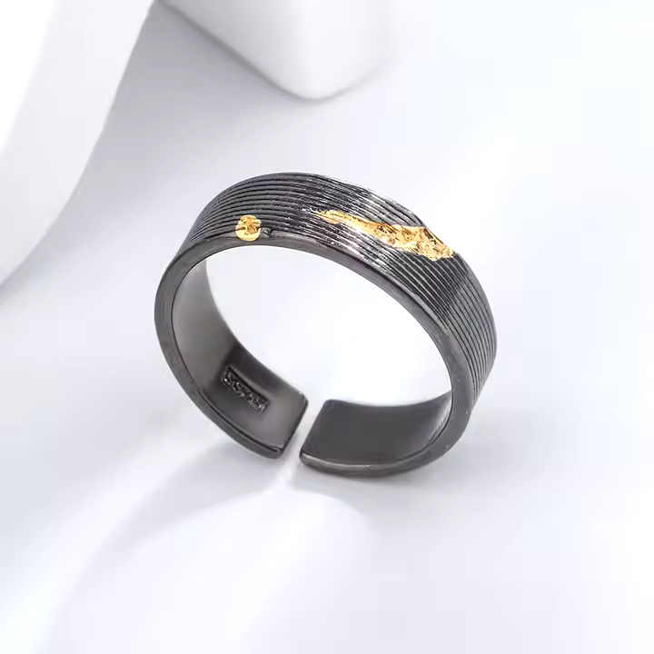 Stylischer Damen- Herrenring Schwarz und Glatt 925er Silber – Ozeanische Eleganz