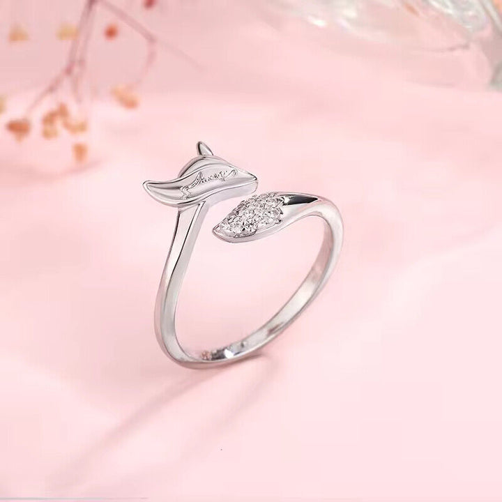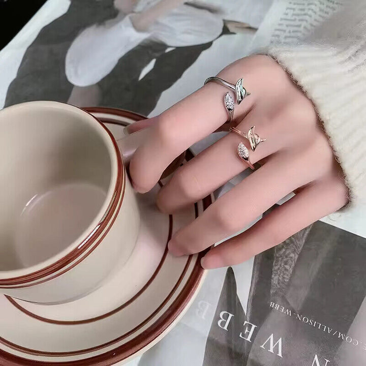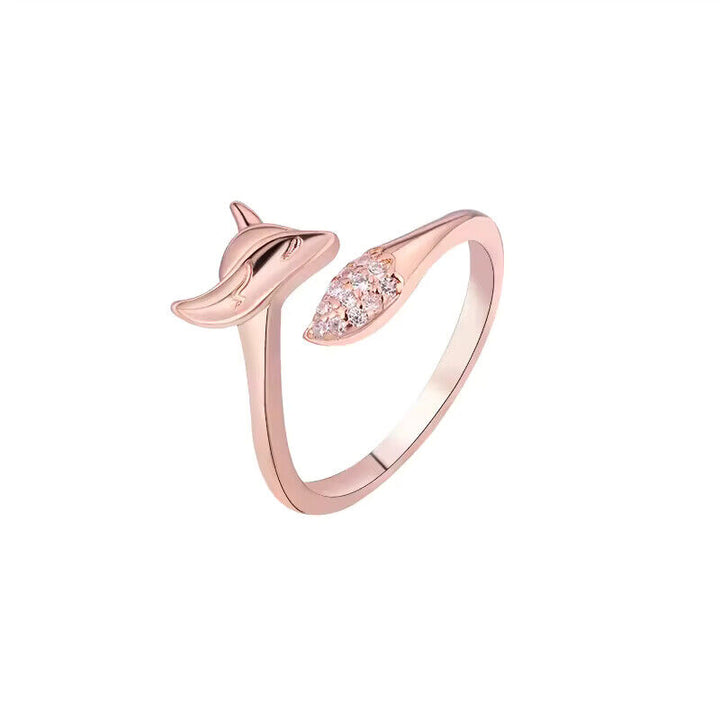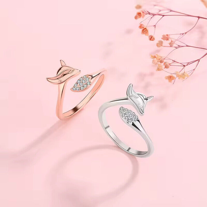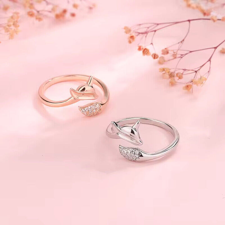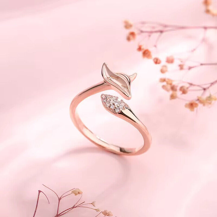 Süßer Damenring mit Wolf motiv und Zirkonia, größenverstellbar, Silber-Rosegold
