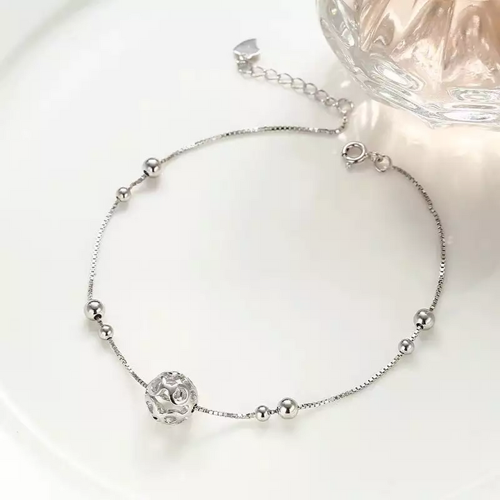 Triple Armband Kugeln Sterlingsilber 925 Herzens Damen Armkette 15+4cm