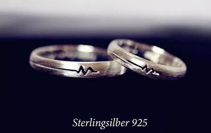 Zwei Partnerringe Ring Silber 925 Herzschlag Liebe Trauringe Freundschaft.