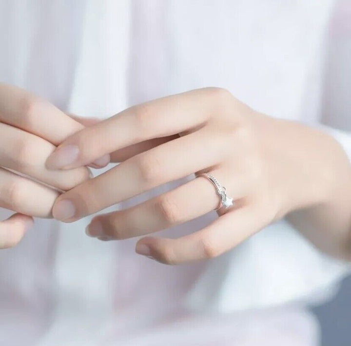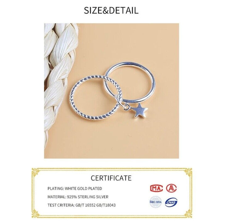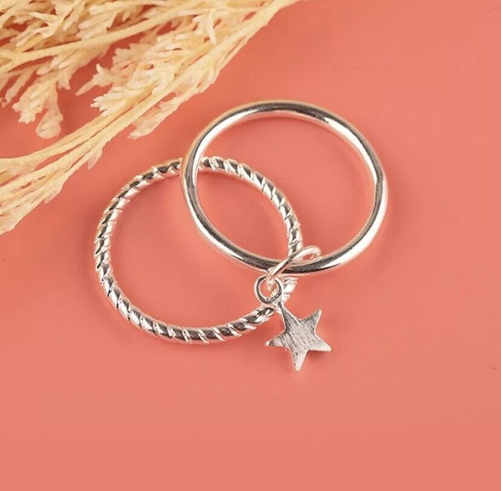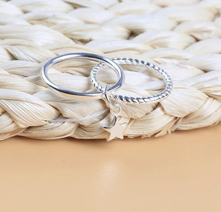 Zwei Schmaler Ring mit Stern Sterling Silber 925 Damenring