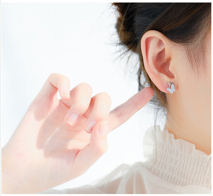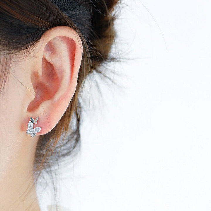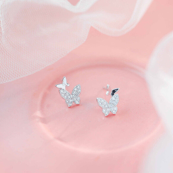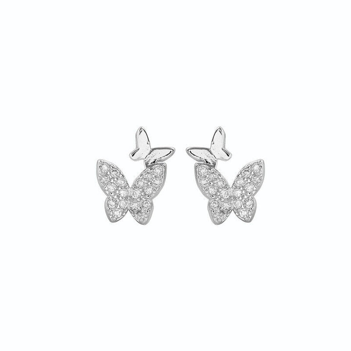 Zwei Schmetterlinge Ohrstecker Silber 925 Zirkonia Damen Ohrringe